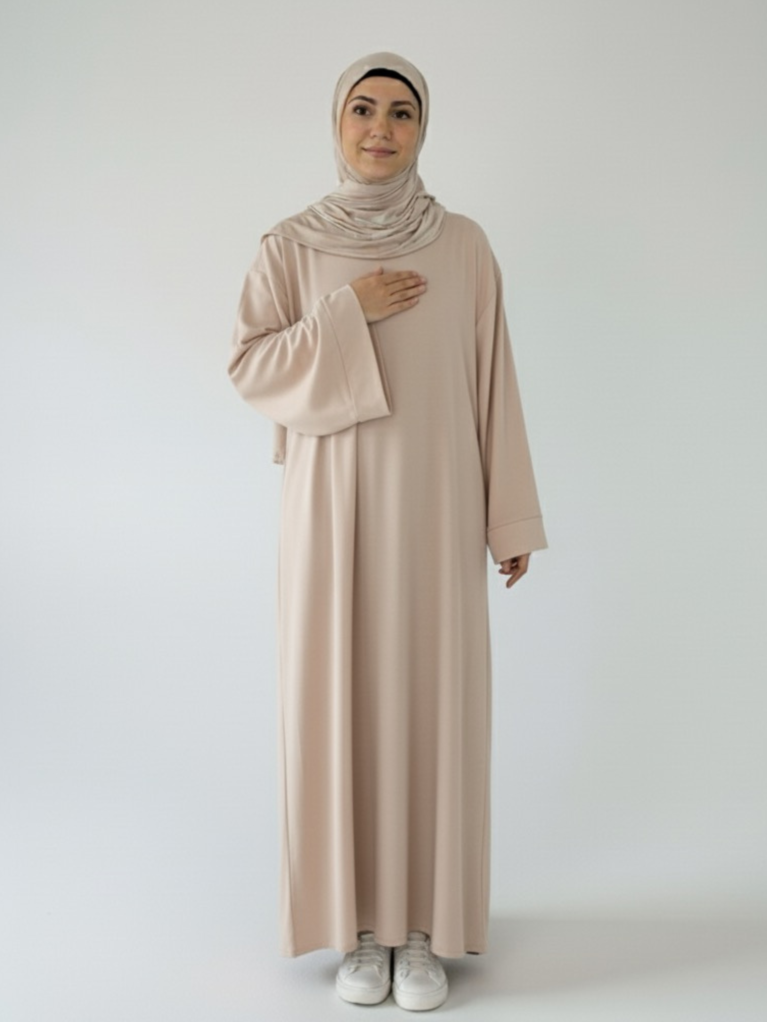 Das Model ist 1,65 und trägt die Einheitsgröße.